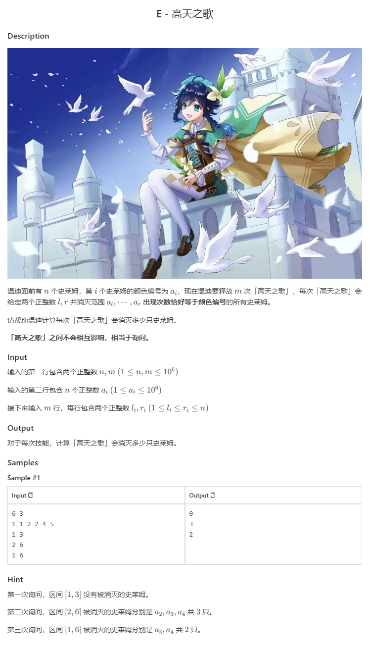 我们通过枚举左端点 \(L\), 使用差分树状数组来维护 \(R\), 即可求解